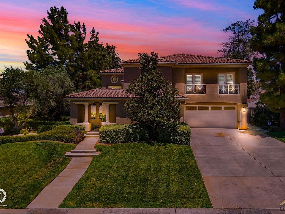 Stunning Home with Breathtaking Views in Prestigious Gated Tuscany Estates! This is THE HOME for multi-generational living with approx 3777 sqft of living space! Exquisite 5 Bedroom + 4.5 Bath home features an expansive open floor plan including 2 primary suites upstairs, and a 3rd mother-in-law suite downstairs with its own sitting room and bath. Two additional bedrooms upstairs share a bath and bonus game room. Luxurious multiple living spaces, gourmet chef's kitchen with 6 burner KitchenAid gas cooktop, gorgeous tiled flooring with inlays, and plantation shutters throughout. The impressive primary suite has a balcony with breathtaking views of the backyard and countryside, an en suite bath with his/hers separate sinks, and huge walk-in his/hers closets. This resort like setting comes complete with an in-ground swimming pool with raised waterfall wall, large covered patio for gathering, and lush landscaping on approx .83 acres with gorgeous views. This is truly a one-of-a-kind home!