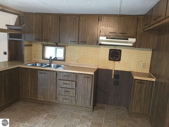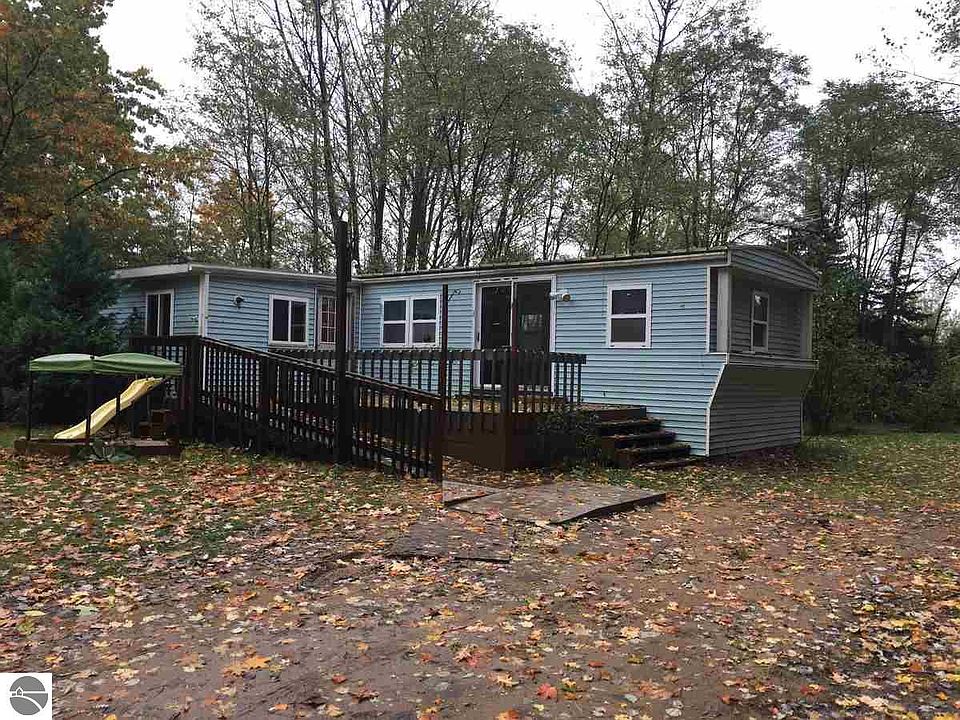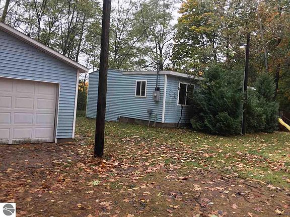 Manufactured home in Kewadin, with a site-built addition and 2 car detached garage. This home has two bedrooms and one bath, and has two living areas. There is a spacious front deck. The large yard features a circle drive, and is lined with wooded areas. This is a bank owned home, sold as is, without disclosures. It is priced to sell quickly.
