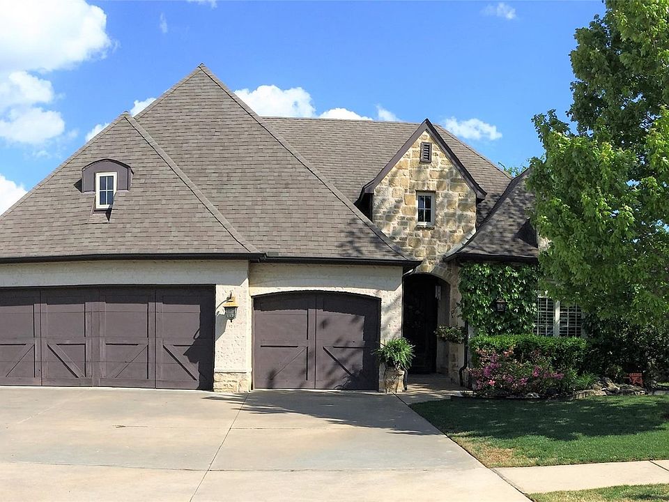 Spacious & charming, perfect for entertaining! 4 bedrooms, 3.5 baths, 2 living areas, office, formal dining, breakfast eating area. Office c/b 5th BR. Grand entry, beamed living area open to gourmet kitchen & dining. Detailed custom cabinets & bookcases! 2 ovens, gas cooktop, coffee bar, massive granite center island, pantry, breakfast eating area. Lovely landscaping, extended cov patio, sprinkler system. $3000 allowance for upgrades or closing costs. Neighborhood park & pool, 1 mile from new Bixby School