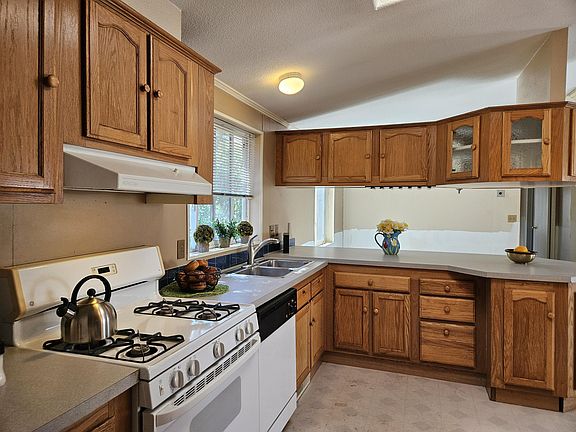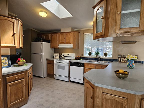 Located along the bank of Clear Creek, this mobile in Clear Creek Mobile Park is waiting for a new owner! Covered front porch with fiberglass steps. This is a split floorplan with spacious master suite on one side with a large bath including shower and separate tub. The other 2 bedrooms are on the other side, each with walk in closets. The hall bath has a tub/shower and vanity with one sink. The kitchen has lots of cabinets and counter space. There is a breakfast bar and dining area. The large living room has has a freestanding gas fireplace. Needs interior paint and flooring. Metal shed included.