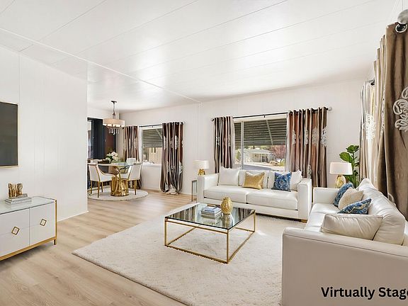 Cute 2-bed/2-bath mobile with views of mountains and a creek in the fantastic Clear Creek Mobile Estates! Light and airy, freshly painted, with new laminate floors in the living room, dining area, and bedrooms. The HVAC, hot water heater, dishwasher, and fridge were all installed in 2021. Brand new garbage disposal in kitchen. Enjoy easy living with a no-maintenance yard. Watch the deer and other wildlife wander through the park. And if you open your bedroom window, you'll even be able to hear the sound of running water in the nearby creek. Best of all, you'll be very close to all that Whiskeytown National Recreation Area offers and fantastic hunting spots. Make this your primary home or your getaway mountain retreat!