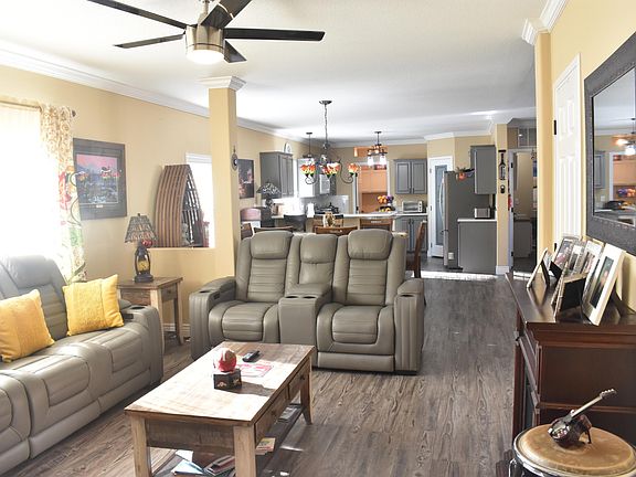 Discover this stunning 1,988 square foot home, thoughtfully updated with elegant touches throughout. The kitchen features sleek quartz countertops that blend seamlessly with the luxury vinyl flooring, offering both style and durability. Pine wood crown molding and baseboards add a touch of sophistication and warmth, enhancing the home's classic charm. This meticulously remodeled 4 bed, 2 bath manufactured home was built in 2007 and is located in a family park near the historic Old Shasta and Whiskeytown Lake, making it a perfect retreat for comfortable living. Move right in and immediately start living your life in a well maintained quiet park, surrounded by nature and mountains. Or just relax in your fenced yard and enjoy some fruit from your fruit trees with your family and friends.