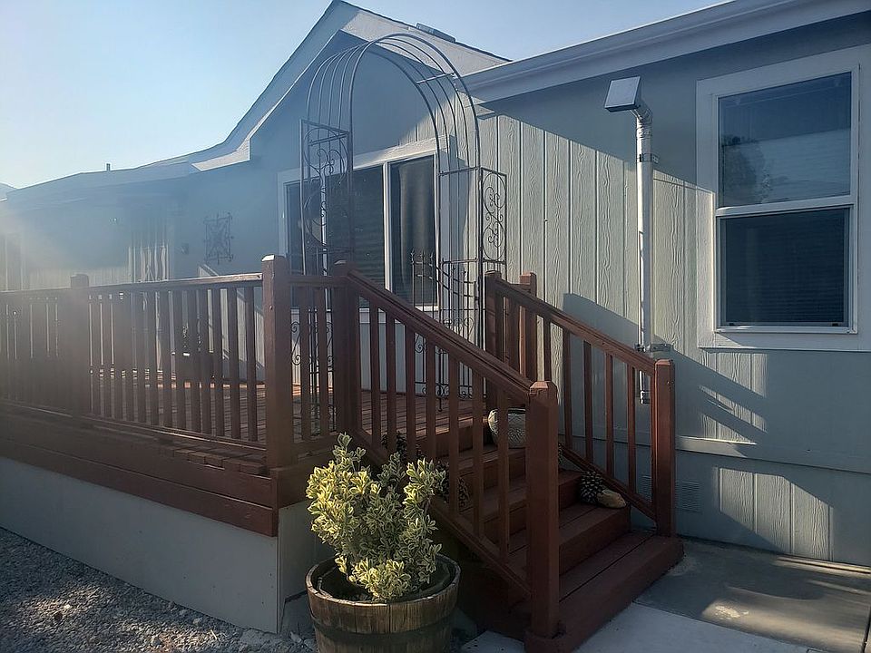 Custom three bedroom, plus den/office. Two bath. One of a kind home features an unusually large floor plan features a full standard kitchen, many cabinets and pantry. Deluxe master bath with garden tub and separate stall shower. Master bedroom privacy setting. High end window treatments/sun blocking blinds. Well manicured side yard with raised beds for planting, separate grape arbor, two large decks (back covered) with incredible mountain views, pellet stove and stone wall with mantle, warm and cozy winters. Fenced yard.