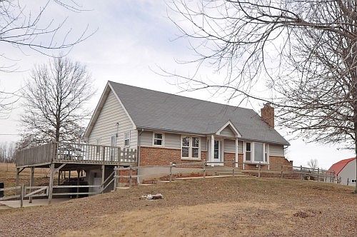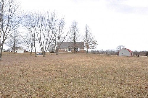 ATTENTION HORSE LOVERS! Nice home, newer paint inside & carpet. Has steel siding. Almost finished family rm in bsmt-just needs carpet. 1/2 hath down & brick fireplace. Open floor plan. Kitchen, dining & great rm all one big rm w/ floor-to-ceiling, wall-to-wall stone fpl. Corner 5 acres M/L w/4-stall barn w/electric. Fully fenced. Treed front yard.