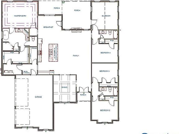 3 CAR GARAGE - 12' CEILINGS - EXTENSIVE TRIM. NO CARPET! Wilson A Plan is a 4BR, 3BA home w/ Sunroom. Kitchen w/12' ceiling, granite, large 45-degree island w/ seating and additional prep island, soft close custom cabinetry, gas cooktop w/cabinet vent hood, tile backsplash, large pantry. Great Room w/12' ceiling & gas-log fireplace; Dining Room w/12' coffered ceiling & wainscotting. Master BR w/dbl. trey, recessed lights, ceiling fan. Master bath w/ Free Standing Tub, Tile shower w/ dbl. shower heads & rimless door & huge walk-in closet. Three additional BR w/ceiling fans, crown molding. Sunroom w/ vaulted ceiling, ceiling fan, recessed lights. Large, covered rear porch