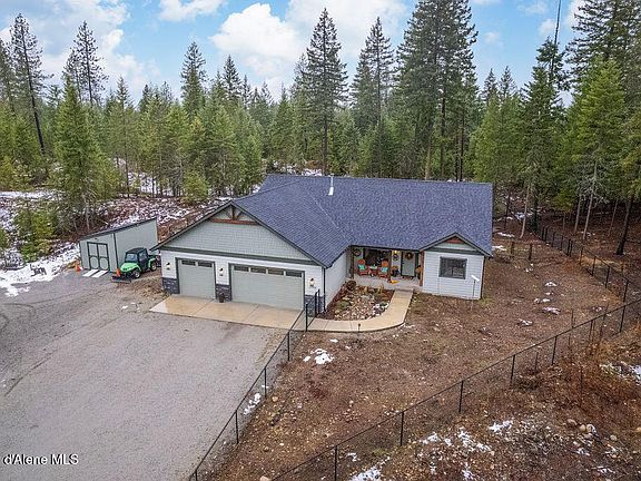 Fidelity One-Year Home Warranty Included! *Come enjoy this 10.7-acre wonderland of tamaracks and pines just a few minutes from Farragut State Park! There is plenty of room for all your outdoor activities—a large fenced-in yard to keep your animals in and the moose and deer out. Pack up your toys and binoculars for a personal Big Foot hunt on nearby trails and lakes. This stunning home boasts three bedrooms and two baths, all on one level. It's just a few Big Feet away from State land! With gorgeous built-in cabinets, knotty alder trim throughout, and countertops dressed in granite and marble, this place is begging to be your forever home! The bathrooms flaunt fancy upgraded tiles, and let's not forget the 9x9 master closet! Stay toasty by the gas fireplace in winter and cool off with your central AC in the summer. What are you waiting for? Adventure awaits!
