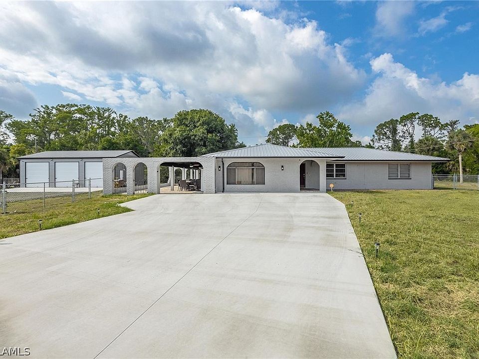 Appraisal in hand, home is priced at Appraised value! FULLY REMODELED 3/2 with large bonus room on 1/2 acre in Fort Myers Shores! This home features a 1200 square foot metal shop with 3, 10 foot bay doors, the shop is fully insulated and air conditioned and sits in a fully fenced yard, with brand new concrete and millings entrance. The back and side yards are fenced, so bring your fur babies! Entertain on the large stone patio or use as a carport.