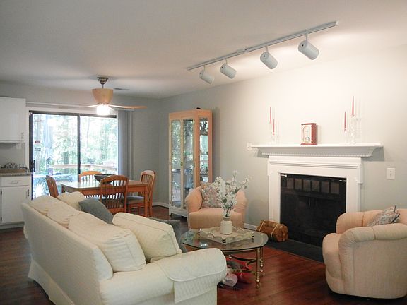 Wonderful ranch style home with stylish updates for the saavy buyer! This ranch style home features first floor living at its best with easy flow floor plan with family room, eat in area and kitchen, master suite with adjoining bath, nicely updated kitchen with sleek granite counters, stylish cabinetry colors, hardware, and island setting, pretty hardwood floors , spacious family room with cozy wood burning fireplace (inspected in 2017 when home was purchased), New vinyl floating planks flooring for bath, neutral colors for paint and carpet, sleek lighting details added, patio setting in rear with plenty of entertaining areas, detached shed, newer roof (2010) and spacious front porch. Enjoy the resident amenities throughout this award winning community with 15 miles of walking/jogging paths, Swift Creek Reservoir, 5 playgrounds, and picnic areas, and the convenience of being close by all the newest shopping and freeways! Don't miss this great value first floor master ranch!