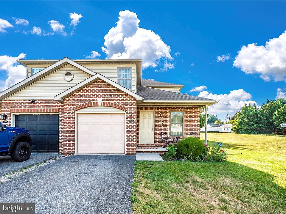 Spacious and bright duplex in Maugansville. Welcoming porch, living room with vaulted ceiling and newer laminate flooring, dining room with generous bay window and plenty of natural light. The kitchen features granite countertops, ample cabinet storage, and sliding doors to the deck and large yard. Updated half bath, and mudroom/laundry room with tile flooring on the main level. The second level offers the primary bedroom with walk-in closet and an en suite bathroom with tile,two more bedrooms, and a full bath. Attached 1 car garage and shed. Don't delay and schedule a tour now!