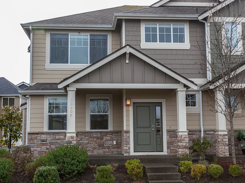 Mill Creek townhouse with 3 bedrooms, 2.5 bathrooms features a warm family room with gas fireplace, bright dining area with bamboo floors and kitchen with granite countertops, breakfast bar, gas range and pantry. The master suite is complete with a walk-in closet, separate shower, soaking tub, dual sinks and french doors that open onto the upstairs landing. Additional features include a laundry room, office/loft space, 2-car garage and plenty of outdoor space. Pets on a case-by-case basis.