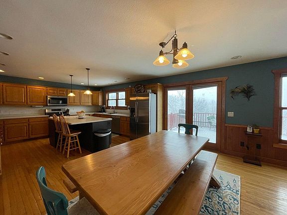 Beautiful ridge top property overlooking the Mississippi River Valley. Recreational piece of paradise has 27.7 acres. Built in 2003, this 2 story home has 4 bedrooms, 3 full baths, a new 3 car garage, and a bonus 2 car detached garage with full loft storage. Some special features include warm wood floors, six panel doors, infloor heat in the lower level, a walk in sauna, new septic in 2018 and a new submersible pump in 2023. Large wrap around deck is the perfect place to relax any time of the day!