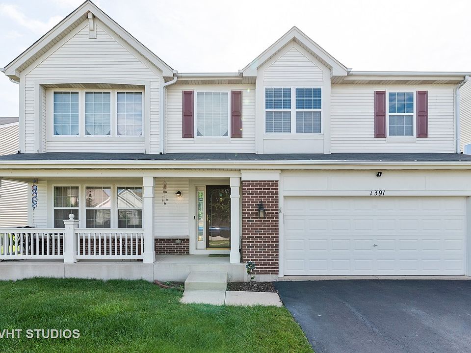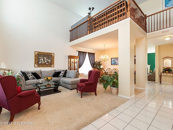 This beautiful, spacious 4BR, 2.5 Bath, home is a true gem. Updated and featuring an open concept floor plan, including formal living room, dining room, 1st floor family room and a loft. The entrance is graced by a captivating two story foyer, elegant tile and a beautiful staircase. Entertaining will be easy in the spacious kitchen which includes 42" high Cherry Cabinets, granite counters and a large island, eating area, spacious pantry, and with newer stainless steel appliances (except dishwasher). Open to the kitchen is an ample sized sun room, making it a perfect space for entertaining! The large master bedroom suite offers a large walk-in close, vaulted ceiling and luxury master bath with separate shower, soaking tub, and double vanity. The basement is ready for your finishing ideas and contains bathroom rough-in. In addition, the community offers a clubhouse with fitness center, huge pool, and gym.