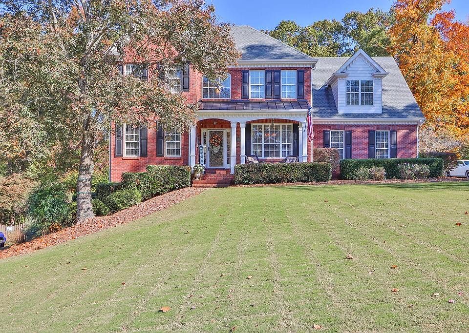 Enjoy the wonderful outdoors with this home that boasts a large covered front porch, a delightful sun deck off the kitchen and family room, and a covered patio off the finished basement. Nature enthusiasts will revel in the serene ambiance, complete with a water feature and the melodic sounds of chirping birds. An outdoor entertainment haven awaits, featuring a stone fireplace, a charming pond water feature, and an ideal spot for barbecues. Discover the allure of this exquisite 4-bedroom, 2 1/2-bathroom residence, boasting a partially finished basement. There is a bonus 5th bedroom in the basement which includes a stubbed bathroom. Build the bathroom to your specification. Step into luxury as the oversized master bedroom captivates with a serene view of the tree-lined backyard. The master bath is a haven of indulgence, featuring dual sinks, a separate shower, jetted tub, and a generously sized walk-in closet. Three additional well-proportioned bedrooms, a full bath, and a conveniently located laundry room grace the second floor. Elegance abounds with hardwood flooring throughout the expansive second-story landing, complemented by new carpet in the bedrooms and on the main level in the office and dining room. The main level exudes sophistication, offering a two-story foyer, hardwood floors, a separate dining room with a tray ceiling, wainscoting, and chair rail. A main-level office or sitting room, a spacious kitchen with new stainless steel appliances, white cabinets, breakfast bar, separate dining area, and hardwood flooring create a perfect blend of comfort and style. The cozy family room is bathed in natural light and features a wood-burning fireplace with a gas starter. Crown molding and covered 4-inch baseboards grace the first, second, and third floors. Newer HVAC .Home Warranty will be provided by Sellers. Ideally situated for your lifestyle, relish the proximity to Chateau Elan winery, fine dining, golf, shopping, and more.