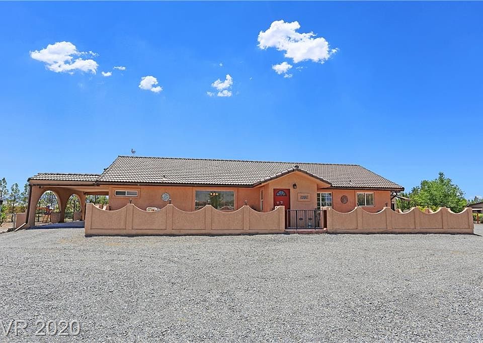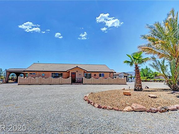 Can you spell SPECTACULAR!!! This home is located on TWO ACRES with two patios out front to watch the sunrise over Mt. Charleston. Large patio in rear w/misters & built-in BBQ. MAIN HOUSE features master bedroom separate from other bedrooms, separate laundry room, tile flooring throughout & separate area for an office. But it doesn't end there...Featuring a MANCAVE and a SEPARATE guest quarters w/kitchen, bedroom, and bath.