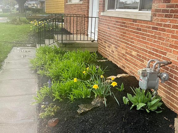 Recent updates include new LVP flooring and carpeting throughout. Fresh paint, white trim and 6-panel doors. Raised brick hearth at fireplace with new tile. *Currently decorative because owner has never used and does not warrant.). New roof, downspouts, gutters, &,drainage to street. Full basement offers potential for large recreation room and den.. . Corner lot with rear fenced area. Updated kitchen with white cabinetry, quartz counters, new stainless refrigerator and dishwasher. Updated bath offers linen for storage. New light & plumbing fixtures, furnace & electrical panel. Basement is clean with sump pump addition. and fresh paint. Plenty of storage.