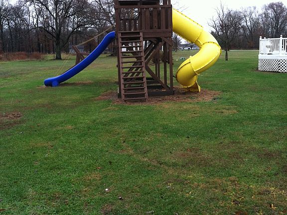 Great home with 2 acres. Very peaceful and private. The house is on a dead end road and only 2 miles from the main highway. The upstairs consists of two bedrooms with walk-in closets, a bathroom, kitchen, and a sitting room. The basement has a living room with a built-in entertainment center and fireplace, laundry room, bathroom, two storage closets, and a large office with built-in shelves. Outside you will find a large vinyl deck, in addition to a playground and a coach house garage. The house has a concrete drive way and the detached garage has a new gravel driveway.