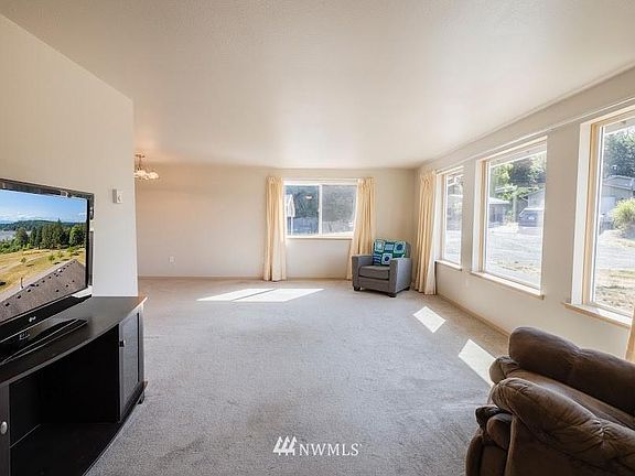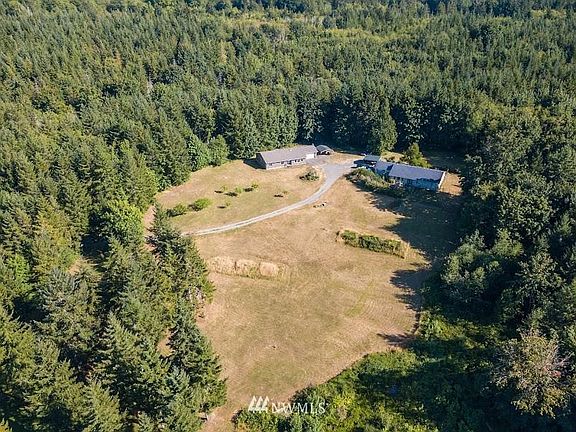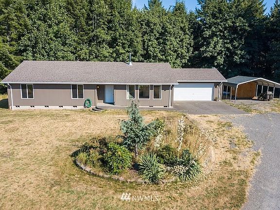 Beautiful 1-story home on 4.95 acres perched above a pastoral setting overlooking captivating water views of Chapman Cove & panoramic views of the Olympic Mountains... Western exposure offers gorgeous Sunsets! Location: Best of 'both worlds'... Plenty of privacy & room to roam... But, also near stores/amenities & close to 1 neighbor. 3 bedrooms & a bonus room w/ a closet. The living room, dining room, & two of the bedrooms have windows that offer water/mountain views. Spacious kitchen countertops w/ oversized eating bar & lots of cabinetry storage. Pantry. Master Suite has a large walk-in closet. Cozy wood burning freestanding stove. Attached 2-car garage & a detached 2-car carport. Fruit trees. Serene treed setting behind the home.