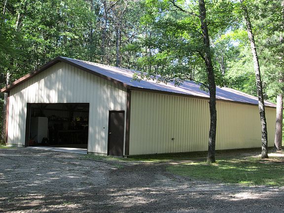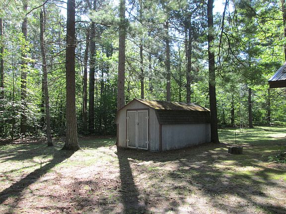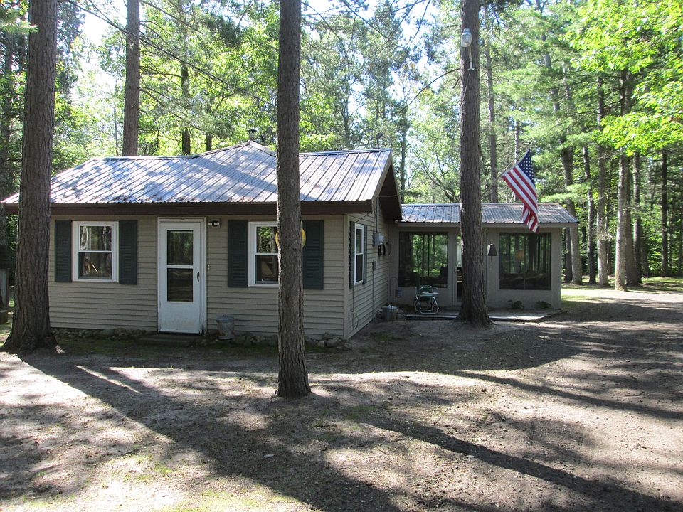 Up north dream cabin just waiting for a new owner to come and enjoy. This 1264 sq. ft. cabin sits on just under 5 acres of land with thousands of acres of state land across the road. Home features a large living room with original log beams, vaulted ceilings, knotty pine walls and a wood burning fireplace with insert. Home has 3 bedrooms and 1 bath and comes fully furnished and with appliances. There is a stackable washer/ dryer in the bathroom. Relax in the 15x 18 sunroom and enjoy the view of the beautiful woods and wildlife. Home has a metal roof . Outside there is a 30x 64 pole barn to store all your toys and use as a work shop. There are 2 sheds and a wood shed to keep your wood dry. There is also a 2004 RV for guests or the kids to enjoy. Trails are just across the road.