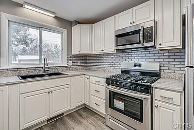 Get ready for your brand new kitchen!! New kitchen just completed February 2020! Renovations include new quartz countertops, bright "cotton" colored cabinetry, all new stainless steel appliances and new flooring throughout kitchen / dining room. This ranch home also offers three bedrooms and full bath on first floor with hardwood floors and large living room on beautiful corner lot. Laundry in basement and hook ups also on first floor. Fresh paint through living room, hallway, two bedrooms and closets. Partially finished basement with living space, bedroom full bath and laundry room. Attached garage and lovely front deck! Call today for your private viewing of this beautiful ranch home!