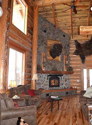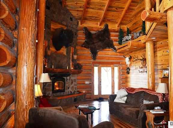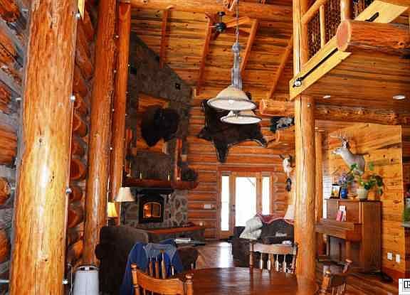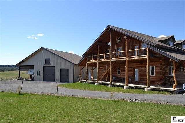 PC387 Exquisite custom log home on 8.56 acres! Living room features vaulted ceilings, fireplace, & lots of windows to let in natural light w/amazing countryside views. Main floor Master bedroom with bath, main floor laundry & on demand hot water. Master bath has waterfall feature that fills up the bathtub. 2 more bedrooms plus bonus room. 2 story 45x55 heated shop w/bathroom to store your toys & plenty of storage. RV parking, 2 hookup & dump sites for RV. Relax & enjoy the outdoors on covered