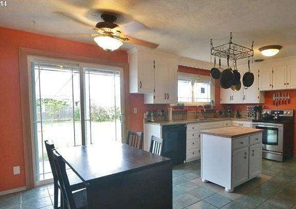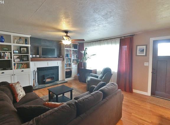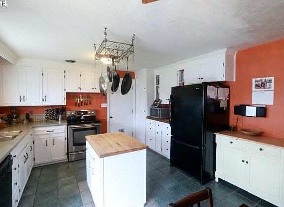 Gardeners dream cottage overflowing with fruit trees, raised beds, two sheds, and serene covered patio. Updated interior includes completely renovated bathroom with marble tiles/new fixtures,living room houses built-in book cases with hidden computer desk and custom mantel/fireplace surround. Garage boasts additional attic storage/laundry. Spacious kitchen includes island, hanging pot-rack, sliding glass doors out to private paradise.