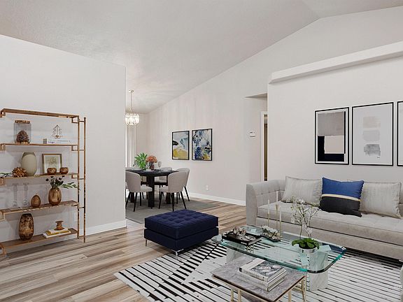Impeccably maintained single level home on a corner lot. Located centrally near Desert Canyon Golf Course, Mountain Home Public Library, Carl Miller Park, schools and St. Luke's Elmore Hospital. Move-in ready, this beauty features a freshly painted interior, new laminate flooring in the main living areas and new carpet in all bedrooms. Vaulted ceilings give a light and airy feel as you enter the living room. The kitchen has granite countertops with a tile backsplash and pantry. You get to decide how to use the bonus room that could be an office, exercise space, family den or playroom. Washer and dryer are included along with a second refrigerator in the garage. AC unit was replaced in 2021. Covered back patio allows for BBQ's all year long and 2 storage sheds for all your stuff. This is a great home looking for a new owner. All you need to do is move in! Home is virtually staged to give an idea for furniture placement and scale.