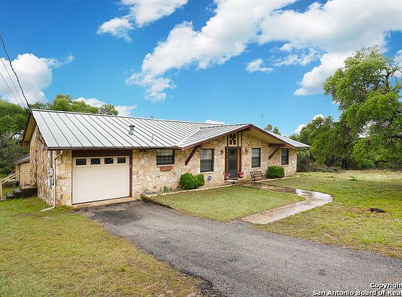 Own a charming oasis in highly desired Comal County with this true Texas Hill Country home. You will know you are at home when you enter the front door and see the beautiful stone fireplace and large windows that overlook a peaceful green area with a nice view. This 3/2 home has a spacious family room, great kitchen with tons of storage, a 10' breakfast bar, and a separate dining area perfect for large family gatherings. Continuing through the house, you will find linen closets in both bathrooms, and a master bedroom with built-in storage as well as two ample closets. Be sure to step outside and take in the natural setting on this HUGE (23 X 10) covered back patio with ceiling fans and built in stone cooking area. Large storage shed (17 X 21) with electricity will make it a great workshop. Check out the carport/RV pad with electricity. This community is a crowd favorite with low HOA fees and 4 parks with amenities such as campsites, water access, and natural beauty! Minutes from the public golf course and wine tasting rooms. Convenient to Hwy 281, Canyon Lake, shopping, restaurants and medical facilities. Window coverings, refrigerator, washer, and dryer all stay in this well maintained beauty. Don't miss out on this gem!