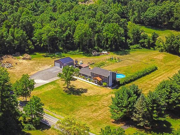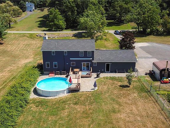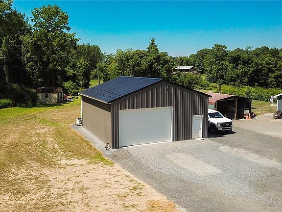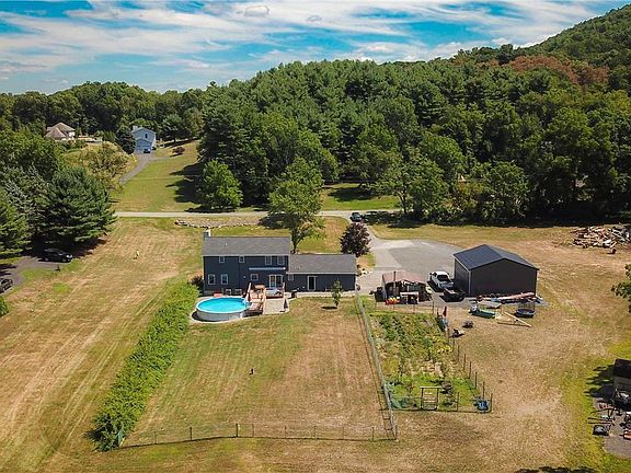 Updated & Spacious 4 bedroom Colonial on 4.4 ACRES with new POLE BARN in Pleasant Valley convenient location! The modern, wood beam covered front porch welcomes you in, with new vinyl plank floors & fresh, light paint throughout. First floor mudroom & laundry room from the 2 car attached garage leads to large Kitchen w/ granite, pantry closet & breakfast area w/ sliders to the deck. Brick wood burning fireplace in the large living room, plus living/dining room, NEW roof, outdoor wood burning furnace & new Central AC (2017/2019). Master Bedroom suite w/Walk-in Closet & en-suite bath. Finished basement w/ full bath, makes a great playroom/den. NEW 30x32 Pole barn has Electric & Water run to it, just finish the hookup. Fenced-in spacious backyard w/ above ground pool & fenced in huge garden!