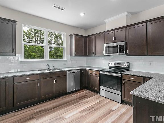 Amazing garage town home located near historic downtown Apex! Walk to all of the festivities that downtown has to offer. 3 beds w 3.5 baths, and optional flex space that can be used as 4th bedroom. Large covered patio and porch for enjoying the outdoors. Large bedrooms, and a huge walk in closet in master! Modern/designer finishes including granite in kitchen, tile in master bath, popular EVP flooring in main living areas. Final "new" town homes in Salem Creek, don't miss your opportunity.