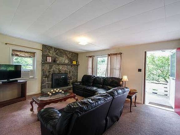 Lovely 2 bedroom one bath home with large eat in kitchen and living room with fireplace. Take in the 11.98 park-like acres from the wrap around deck. Could be perfect for investment property.