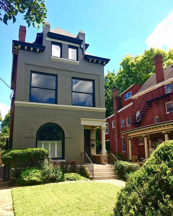 This historic, one-of-a-kind home is waiting for you! The three-floor, 2,792 square-foot, 117 year-old residence sits near a prime corner of the Old Louisville Historic District with quick access to downtown, NuLu, Interstate 65, Churchill Downs, the University of Louisville, Central Park, the Central Station Shopping Center, and so much more. The home boasts an urban neutral palette with high-end finishes that include a renovated kitchen (fitted with GE Slate Edition appliances, quartz counter tops and marble subway tiles), custom plantation shutters and wood blinds throughout, exposed brick, four fireplaces, custom lighting, newly added heating and central air conditioning, two full bedroom suites (including the master bedroom and bath, which features a custom glass and wood pocket bath door entering a stunning space with floor-to-ceiling vertical porcelain tiling, Grohe fixtures, and double serpentine sinks adjacent to a custom-built dressing area), an updated laundry room, custom-fitted California Closets, original hardwood floors throughout, an open concept living/entertaining area (including a full wet bar with custom cabinetry, a Vino-Temp Beverage Center, Rivati Bar Sink, quartz counter tops and LED-lighted shelving, next to a guest half bath), a formal dining room, a private study enclosed by large original and operational wood pocket doors, a private courtyard, and a two-car brick garage. The historic characteristics of this home greet you from the very start as you open the vintage, metal front gate and enter an open entry way and foyer. At the heart of this home is its grand staircase, wrapping around each floor and overlooked by a skylight that brings in natural light throughout the home and pours through all six original stained-glass windows. Classic qualities and time-honored features can be found on every floor and throughout every room - from the original Pine hardwood floors and cabinetry, to a corner spiral staircase that leads from the first and second floors to the well-maintained limestone cellar. The authentic charm and sophisticated character of this home, coupled with its tasteful renovations and convenient location, make it prime real estate for any city dweller.