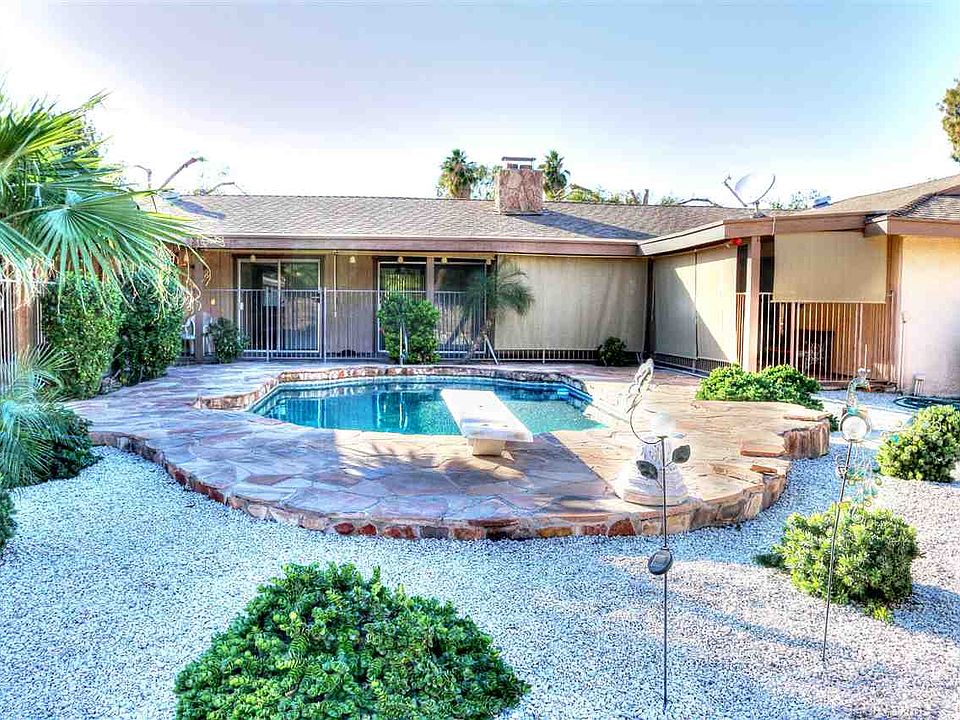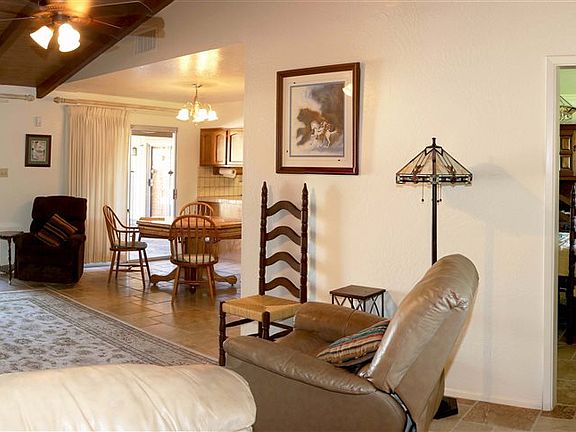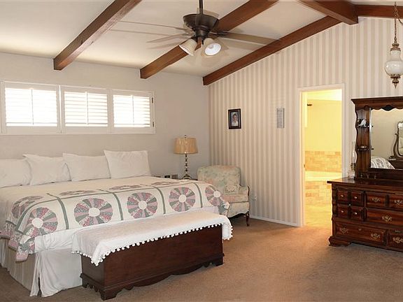 Truly one of a kind sprawling ranch house w/a killer guest house and count em -- six bathrooms! Four bedrooms or office in the main house and an over-sized bedroom w/bath in the guesthouse. Lush backyard setting is an entertainers delight. Massive master suite w/cedar lined closet. 3 a/c units, 3 heaters and an incredible "man shed"/workshop. Must See!!!