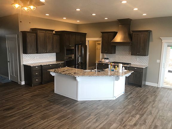 2019 built home located on a cul-d-sac in a new subdivision in the HIGHLAND/SATTERFIELD area, this 5 bed 3 bath with open floor-plan is the perfect house in the perfect location. Beautiful kitchen open to the family room and dining area with great windows overlooking the city with perfect nightly views of the sunset. Woden hood over gas range cooktop. Soft-close wood cabinets, granite counters in kitchen, laundry, and all bathrooms, farm style stainless steel sink located in the island. Beautiful white tile backsplash and build in trash cans. Cozy family room with rock fireplace with hearth to enjoy the warmth during the winter. Laundry room, mudroom, 1 full bathroom, 2 bedrooms with built-in shelves in the closet, and master suite are all on the main level. Covered patio off the dining area with large area for grilling, outdoor table/or couches for entertaining. 10ft ceilings throughout the house and beautiful trim workto enhance natural features are incorporated both upstairs and downstairs. Tile upstairs and upgraded carpet and pad in the bedrooms and downstairs. Large family room downstairs with a WALKOUT basement. 2 bedrooms with walk-in closets, workout room/office, storage room, and full bathroom downstairs. Lots of closet space for storage. Upgraded plastic push-up blinds throughout the entire home. Cement pad large enough for hot tub or our door furniture off the walkout basement. 4 car tandem garage fully painted and finished with window coverings and exterior door to the side of the house. Landscaping finished with curbing, mulch, plants, drip system, and 4 newly planted trees in the back yard. Newly placed sod and sprinkler system for the entire yard. Perfect house to entertain your friends and enjoy the great city views!