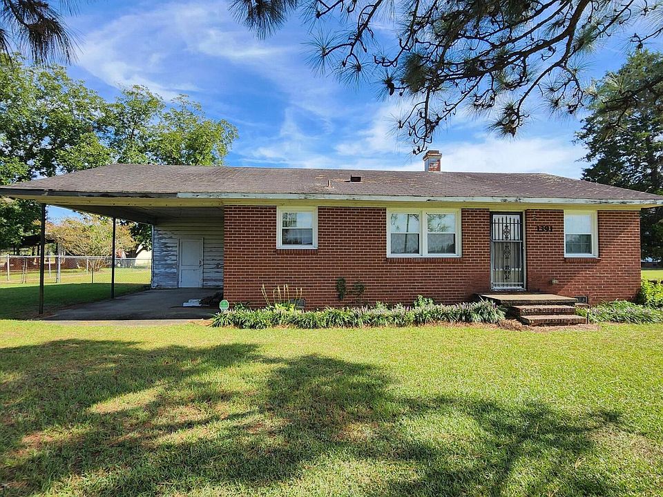SHOWN BY APPOINTMENT ONLY. DO NOT WALK PROPERTY WITHOUT APPOINTMENT. All Brick home on 3 acres. Interior is down to studs and been framed for a 2 bedroom home and could be easily changed back to 3 bedrooms. All ready complete new windows and electrical. Partial insulation. Some building supplies will remain with property, interior doors and insulation. Fenced Back Yard. 10x20 Deatched Storage building and detached 2 car carport. CASH ONLY