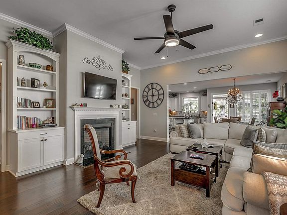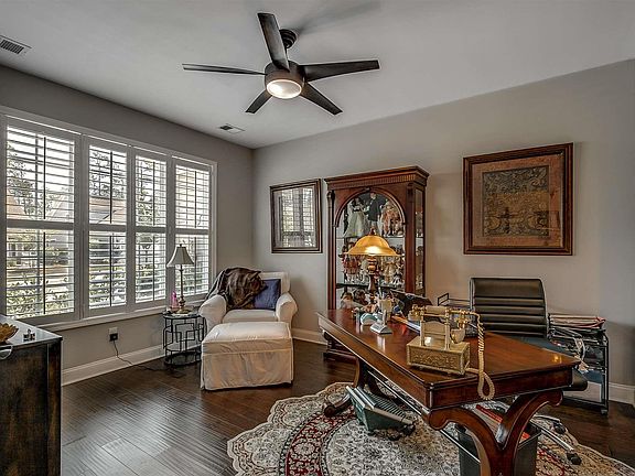 Gorgeous Dogwood model in Cresswind, the most highly sought after community in Market Common.This elegant home is full of upgrades and features an open floor plan with spacious living areas and bedrooms. You will first notice the beautiful hardwood floors throughout the entire home, including the upstairs bonus room/bedroom. There is no carpet anywhere in the home. Stylish crown moulding and plantation shutters throughout the first floor adds character and warmth. The spacious gourmet kitchen features upgraded white cabinetry, granite countertops, beautiful custom backsplash, stainless steel appliances, kitchen island, ample cabinet space and large corner pantry. Enhanced lighting in kitchen includes dimmers and under cabinet lighting.The master bedroom suite features a tray ceiling, upgraded ceiling fan, extra large walk-in closet with custom shelving, an oversized walk-in custom tiled shower with seating and dual vanities. The great room has an upgraded ceiling fan and fireplace with blower, surrounded by custom shelving. The bonus room is a spacious area that can be used as a 4th bedroom, craft room, or another living area. A custom door was added in order to provide more privacy for the bonus room. Off the bonus is walk-in storage, with extra insulation as well as a solar attic fan, which is great for storing your holiday decorations as well as keeping your electric bill lower. In one of the guest rooms a queen-size Murphy bed was installed which provides ample space to use the room in a variety of ways. Once you see the 400 square foot lanai you may never want to leave. The lanai has been converted into a three season Carolina room with floor to ceiling Weathertite windows that can be opened to allow glorious breezes to flow throughout. This oasis also includes two ceiling fans, tiled floors, and pull down shades to keep the room cool on hot summer days. Walk outside from the Carolina room to two beautiful custom paver patios, custom walkway on right side of the house, and stunning professional landscaping, that includes arborvitae fencing with Major Wheeler honeysuckle vines, Japanese maple tree, pigmy date palms and much more. At night the landscaping is lit up and just glows. The space behind the yard butts up to a landscaped berm and a quiet tree-lined backdrop, which provides the ultimate in privacy. Additional upgrades in this home include a front storm door, Ring door bell, extra exterior electricity, security motion lights in the back, a whole house surge protector, six ceiling fans, three medicine cabinets and three custom framed bathroom mirrors. The exterior of the home features hardy plank siding, The garage features pull down attic storage, enclosed under stair closet and key code garage door access. Cresswind has a very active lifestyle, with dozens of activities to participate in. The monthly HOA includes all lawn care, irrigation, cable, security system, a 12,000 sq. ft clubhouse, resort-style pool with cabanas and a hot tub, fitness center, tennis courts, pickle ball courts, bocce ball, horseshoes, outdoor amphitheater, outdoor fire pit, indoor and outdoor kitchens, miles of walking trails and much more. Cresswind is located in Market Common and just a quick golf cart ride to the beach, Myrtle Beach State Park, dining and entertainment. This community is also just a short distance to the airport, Coastal Grand Mall, Broadway at the Beach, Myrtle Beach Boardwalk, and Murrells Inlet's Marshwalk waterfront dining. Don't miss out on this incredible home so you can live this fabulous lifestyle.