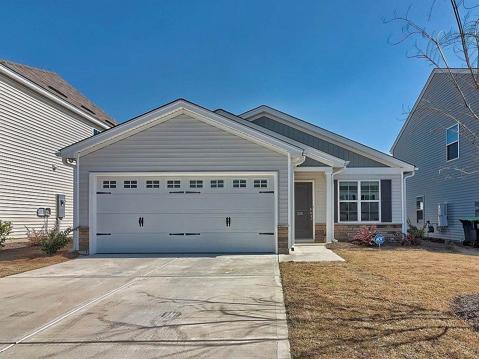Welcome to your next home in the heart of Bluefield. This single story home includes 3 bedrooms and 2 bathrooms. Step inside and feast your eyes on all the natural light. The kitchen features amazing granite countertops and a long island. The kitchen is open to the living room and dining area, it has oyster oak luxury vinyl flooring throughout the entire house. The master bedroom with a walk-in closet and located with a private hallway just off the family room. The laundry room is just inside the two-car garage. Also a beautiful covered back porch. The community has a pool, community center, park and dog park.