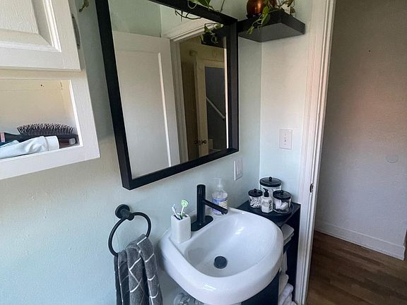Two bedroom house with garage and carport. No A/C but there is a quality portable unit in the house. One bedroom upstairs one downstairs. Hardwood floors throughout house. If there is anything the house needs let us know and we can add it. Thank you for your time and checking out the house. *Plan to install a ductless mini split for heat and AC. It currently has a gas furnace and wall heaters for heat.* If you think this house would be a good fit for you, please email me with a little information about yourself and how long you intend to need the house for. I will send you an application. Thank you for your time. Tenet responsible for water and electric as well as lawn care but a moser is provided. Free off street parking and storage in garage.