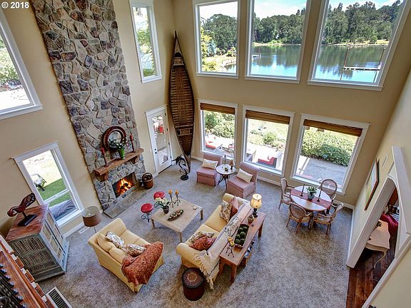 Coveted Lake Oswego Riverfront. Gracious and warm home with a 2 story Great Room plan. Spectacular river views from all living areas and the Master Suite with a private deck. Wonderful entertaining kitchen with Professional Stove with 2 ovens. Granite Island overlooking the river and great room. Vacation at home with your own dock and beach. Great swimming bay.