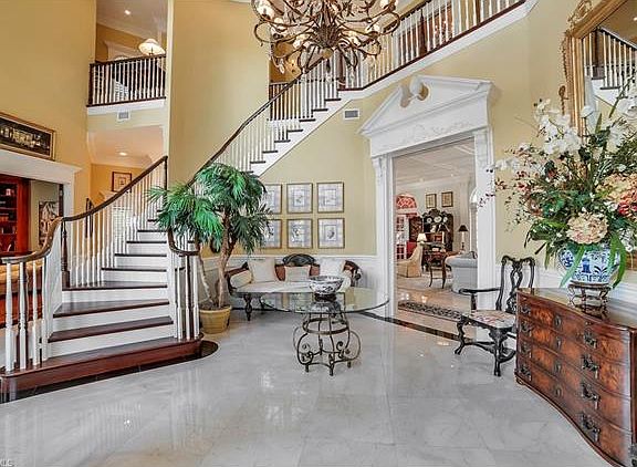 Welcome to Woodland Manor in prestigious St. Charles Yacht Club, with a prime deepwater Gulf and intercoastal access boat slip that will accommodate up to a 40' yacht. Experience the perfect balance of Southern charm, style and comfort, mixed with a masterpiece of quality and craftsmanship, conceived and designed by a noted architect. This magnificent estate home encompasses 12,000 TSF of entertaining pleasure with a functional floor plan for everyday casual family living. Unwind in the two-story Biltmore Estate-style library, have lunch with friends at the Yacht Club, or relax with a glass of wine by the fireplace. The possibilities are endless. Exciting features of this home include: 3+ Car Garage, Butlers' Kitchen with private en-suite quarters, wine tasting room, outdoor summer kitchen, screened porches with rocking chairs, medallioned and coffered ceilings, a private elevator, and more. This welcoming home will enchant the largest of formal parties to small family gatherings when returning from the white sand beaches of Sanibel and Captiva Islands. Please relax and enjoy our video tour of the community and home and call today to schedule your private viewing.