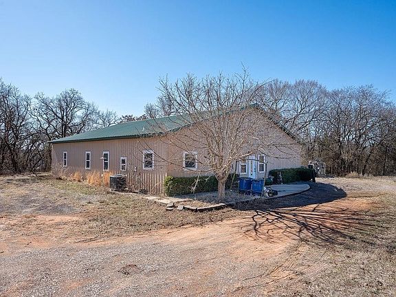 Metal-roofed building featuring red steel beam construction and highly efficient spray foam insulation. Easily create a floor plan that suits your needs since all interior walls are non-load-bearing. This home includes 4 bedrooms, 1 full bath, 1 half-bath, and a three-quarter bath. Boasting a large capacity hot water heater, newer commercial-grade HVAC unit. The kitchen has been remodeled with slow-close doors, and new wood flooring. Additionally, there are three storage platforms above the ceiling. Over 2 acres of land zoned agricultural. Portion of the land has 392 feet of frontage along historic Route 66, providing potential for a direct driveway for businesses or highway attractions. Located just off Route 66, this property would make a great Airbnb near Lake Arcadia. Approximately 3 miles east of the historic round barn and in close proximity to Lake Arcadia.