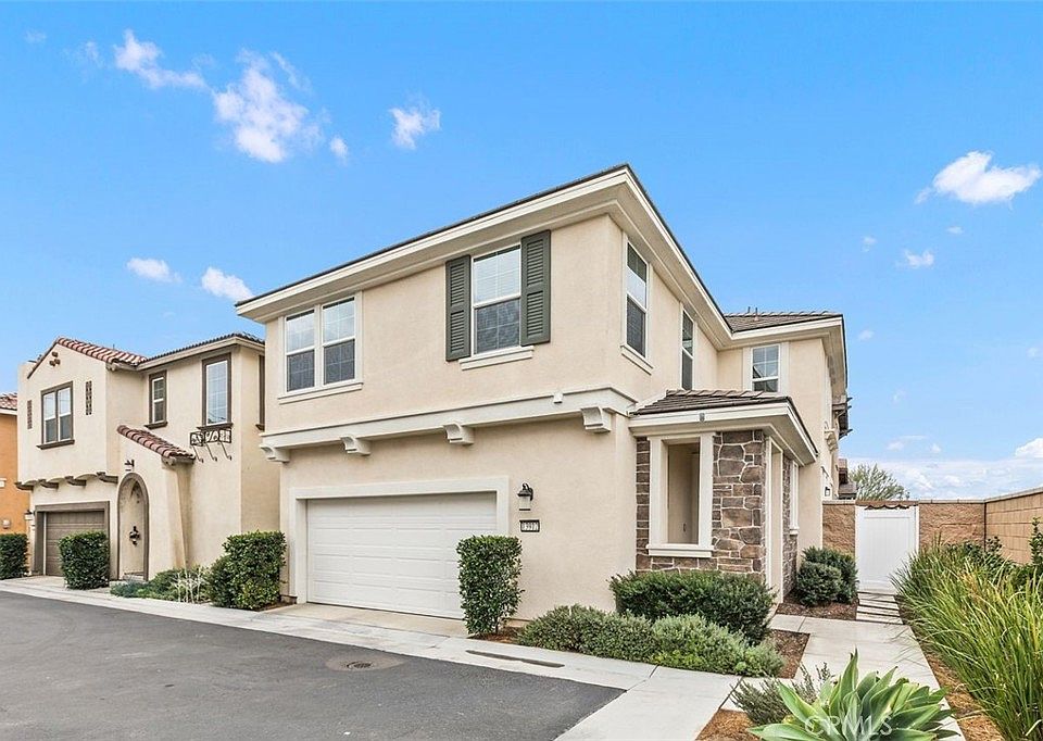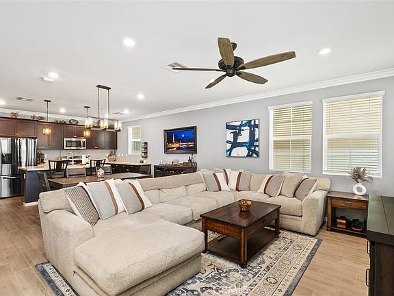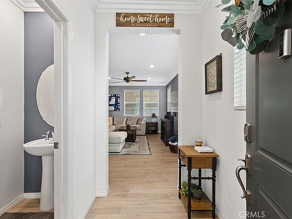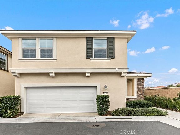 Welcome to this stunning, well-maintained two-story home in the sought-after Sendero neighborhood of Eastvale. Boasting modern upgrades, this 1,860 sq ft residence features 3 bedrooms and 2.5 bathrooms, offering an open concept layout designed for seamless gatherings and entertaining. Experience the epitome of luxury with numerous enhancements, including ceiling fans, custom lighting, crown molding, fresh paint, and solar panels. The abundance of large windows bathes the home in natural light, creating an inviting atmosphere throughout. The expansive kitchen island, adorned with granite countertops and stainless-steel appliances, serves as the focal point for meal preparation and socializing, complemented by a convenient separate coffee bar. Downstairs, wood-like tile flooring adds an elegant touch, while plush carpeting upstairs provides comfort and warmth. Retreat to the spacious primary suite featuring a large walk-in closet and a spa-like bathroom with dual sinks. There are also two large guest rooms upstairs and a guest bath with dual sinks. The upstairs laundry room adds convenience to daily living. Enjoy the charming outdoor space with a patio and artificial turf, perfect for relaxation and BBQ gatherings while also low maintenance. The direct access 2-car garage is equipped with 220V for charging electric vehicles. The community amenities include a pool, spa, clubhouse, playground, and sport courts, enriching the overall lifestyle experience. This home is conveniently located near shopping and offers easy access to major freeways. This home presents a unique opportunity for those seeking a blend of comfort and style. Make an appointment to view this exquisite home today!