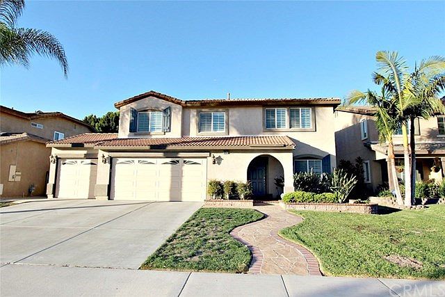 Elegant 2002 built, two-level Corona home with great curb appeal! This bright home with 4 Bedroom and bonus room. Spacious family room with fir place, Large kitchen with walk in pantry. Maple cabinets. and granite counter tops. Beautiful custom tile through-out. Water filtration system , custom draperies and plantation shutters throughout.... Quality lighting fixtures.vaulted ceiling! A must see!