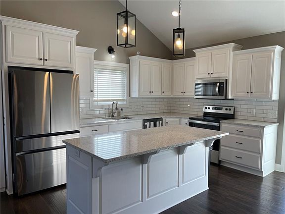 - Ceiling Fan(s), Kitchen Island, Painted Cabinets, Vaulted Ceiling(s)