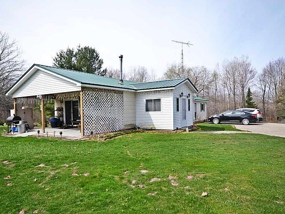 3 Bedroom ranch home on 10 acres with lots of updates. Beautifully landscaped. Newer enclosed porch and large covered porch area. Mostly new flooring. Newer furnace. New LED bulbs installed for energy efficiency. Most furnishings included. Located very close to multiple lake public access sites for the fisherman. Close to US-131 for easy commuting. ATV and snowmobile trails close by.