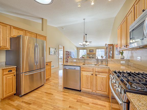 **Multiple Offers Received - Offers will be presented as they are received - Final Review will be 2:00 Saturday, April 15th** Beautiful end unit townhome that backs up to a wooded pond with abundant nature and wildlife. The vaulted main floor offers: A large kitchen with custom oak cabinetry, granite countertops, stainless steel appliances and natural hardwood flooring. A vaulted dining area. A large living room that walks out to the deck and has a stone-surround fireplace. A nice office/bedroom. A main floor laundry. A large primary suite with a private bath and walk-in closet. A guest bathroom. A two-car garage. The lower-level walks out to a nice patio with a backdrop of nature and offers: An expansive family and recreation room with stone-surround gas fireplace and a billiards area. A large guest bedroom and updated bathroom. A mechanical room with ample storage and room for a nice workbench area. **Inspection Report in Supplements**