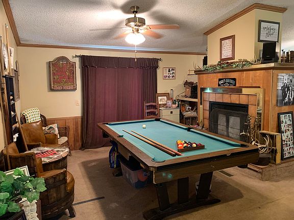 Manufactured home on a permanent foundation. Mostly paved roads to property, Private setting, 2 sided gas fireplace.