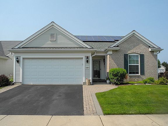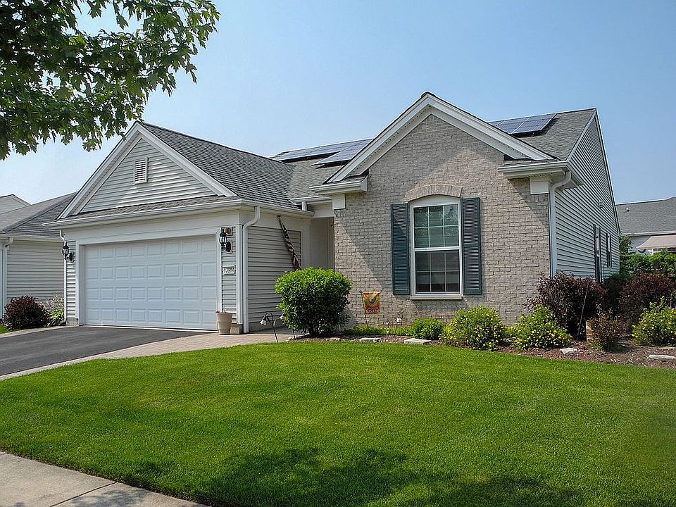 Lovely, move-in-ready 2 bed, 2 bath home located in the resort-style, 55+ community of Sun City by Del Webb. Meticulously maintained and cared for by the original owners. This home has a cozy sunroom that gets bright, beautiful light throughout the day, as well as a south-facing den – perfect for a home office or TV area. A spacious great room with gas fireplace and formal dining area has large windows that let in plenty of natural light, and the 9-foot ceilings make the room feel especially large and open. The kitchen has a gas-range oven, double door refrigerator, microwave, new dishwasher, and upgraded faucet and double sink. The counter and cabinet space is extensive. In the adjoining laundry room, there is a new washer and dryer, as well as a custom backsplash behind the sink. The master bedroom offers a gorgeous bay window overlooking the garden and patio, deep walk-in closet, as well as a large en suite bathroom with huge soaking tub and walk-in shower equipped with a double showerhead. New roof installed in 2019, along with new driveway the same year. Solar panels also installed in 2019 have greatly reduced the cost of the electricity bill – imagine paying only $15 a month! Additionally, the home comes equipped with a security system. The yard is beautifully landscaped with a custom brick paver front sidewalk and patio with curved half walls in backyard, ideal for placing potted plants or extra sitting space. Sprinkling system installed throughout entire yard as well. Extended 2-car garage allows access to the attic, and includes a standing freezer, workbench, and storage. Conveniently located close to I-90 and route 47, Sun City offers an 18-hole golf course, tennis courts, softball field, swimming pools, fitness center, clubhouse, and much more. Come enjoy this peaceful and relaxing community in the home you’ve always dreamed of living in!
