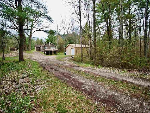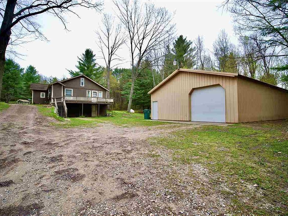 Creek, Pond & 20 Acres! Private, beautiful setting for this low maintenance 2 bedroom, 2 bath home with a large pole building for storing cars and other toys. The home is positioned perfectly & inconspicuously in it's setting! Inside enjoy some beautiful new updates intertwined with retro characteristics - gorgeous new laminated floors AND real plank wood floors. There is a combination of bright open areas and white kitchen softened with tongue & groove knotty pine accents. Check out the live edge cap on the stairwell! Stained glass pieces in a window and door add more charm in this home. Updated bathrooms! Large main floor laundry/mudroom is a perfect side entry. There is a 1/2 story on the second level that could be the cutest reading loft for little guests. Full basement offers a lot of extra space for storage or recreation room/workshop (lots of options). This property is a great spot for a hobby farmer as there are food plots, large garden and extra outbuildings that could house small farm animals. Nature lovers and hunters will enjoy watching wildlife such as deer, wild turkeys, grouse, wood ducks, rabbits etc. If privacy and a quiet environment is important, this is the property for you as there are no homes within sight of this great home. Paved road makes it easy to access this wonderful property, so come and see this home sooner rather than later.