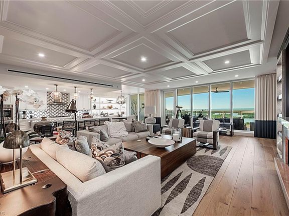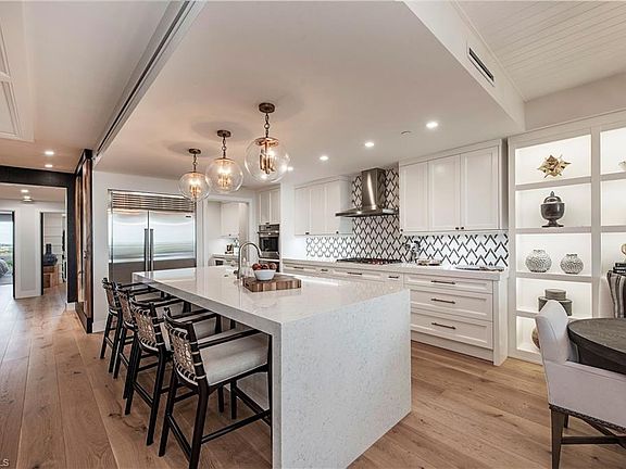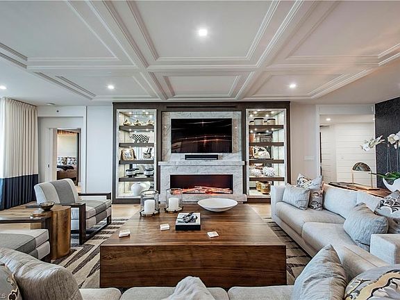 This design-forward aesthetic by Wdesign was featured in Gulf Shore Life Magazine. Private elevator foyer takes you right into this 3 bdrm+ den 4 full bath curated with the finest luxury details and finishes. Ideal for impressive entertaining, the expansive living room features a stunning marble and walnut custom built-in, including laser mist fireplace. Designed for a seamless flow from the living, dining, and kitchen all focused on the incredible views showcased through floor to ceiling windows. Chef-grade Wolf and Subzero appliances outfit this gorgeous kitchen with large social island inviting interaction among family and friends. The master suite is the epitome of luxury, with walnut inlaid custom wood ceiling. Custom designed vanities, mosaic tile tub wall, and large custom walk-in closet. A sophisticated Den/home office with a custom built-in desk. Two full en-suite bedrooms perfect for even the most discerning guests. Indulge in the feeling of an all-inclusive resort where the vacation never ends. Kalea Bay has a rooftop pool with sundeck, full-service club, two restaurants, 3 pools, and active tennis/pickleball program, and guest suites.