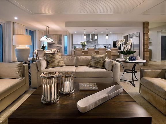 MOVE IN NOW! DON'T WAIT! Award winning Tower 100 model completed by W Design Interiors. Contemporary Coastal design is coupled with the finest custom finishes in this spectacular Kalea Bay Tower 100 Unit. Extensive upgrades in every room. Four full bedrooms with two en suite guest rooms complement this open floor plan. Extensive millwork, ceiling treatments, designer lighting, furniture and window coverings throughout are included. The Kitchen is perfect for entertaining. Butler's pantry with under cabinet wine cooler and Wolf/Subzero appliances. The outdoor/indoor living style is reflected in your large, open lanai. Take in the beautiful Naples sunset and enjoy the best of coastal resort living on the rooftop pool and fitness area. The Club at Kalea Bay features a restaurant, bistro, children's pool, outdoor bar, adult pool, tennis, pickleball and guest cottages.